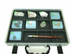 共10件硬度1~10度的標準礦物,內含:滑石、石膏、方解石、螢石、磷灰石、正長石、石英、黃玉、剛玉、金剛石。