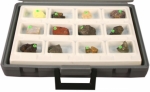 內含24種台灣主要標本大小約5*7cm:硫磺、金礦、石英、水晶、玉髓、碧玉、磁鐵礦、鉻鐵礦、硬錳礦、方鉛礦、黃鐵礦、黃銅礦、硫砷銅礦、正長石、閃玉、滑石、電氣石、薔薇輝石、矽孔雀石、葉臘石、高嶺土、方解石、石膏、明礬石。