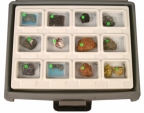 內含12種礦物標本:自然銅、自然硫、輝銅礦、方鉛礦、閃鋅礦、辰砂、金礦、金銅礦、輝鉬礦、毒砂、雄黃礦、雌黃礦。