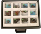 內含12種礦物標本:黃鐵礦、輝銻礦、輝銻晶簇、石鹽、鮞狀赤鐵礦、腎狀赤鐵礦、金紅石、錫石、黑鎢礦、磁鐵礦、鉻鐵礦、鏡鐵礦。