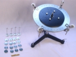 6.金屬電鍍或電木圓型鋼體1個,直徑25公分、厚度約1公分,其上分布7圓槽56個小圓孔,圓孔直徑約3mm(可實驗鋼體靜平衡)。